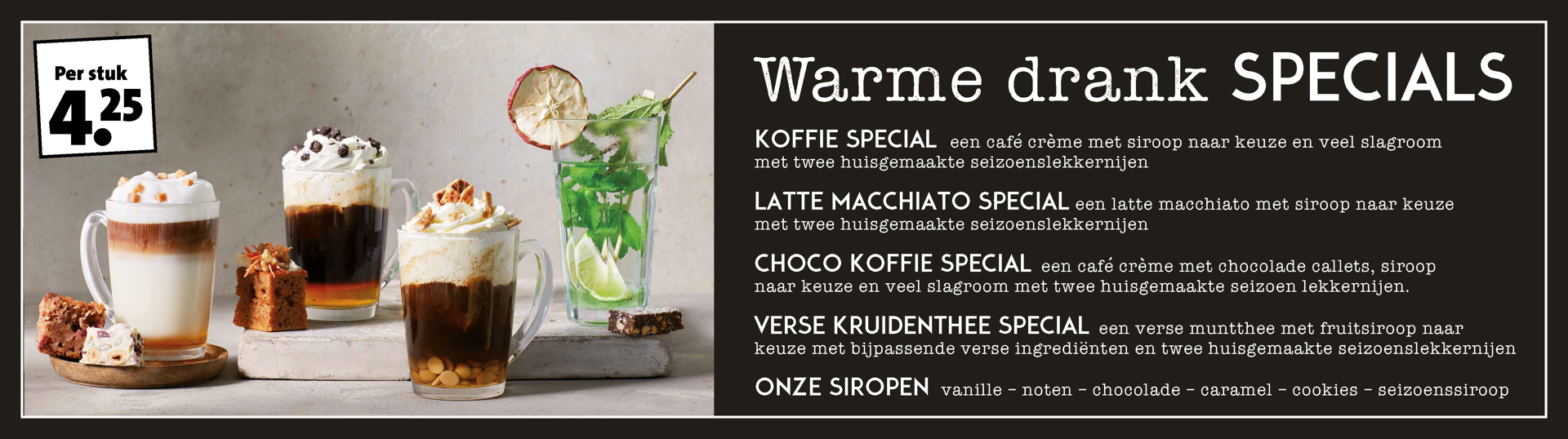 Dibond Sandwisch paneel 3 mm Koffie Specials bord , Full colour enkelzijdig bedrukt