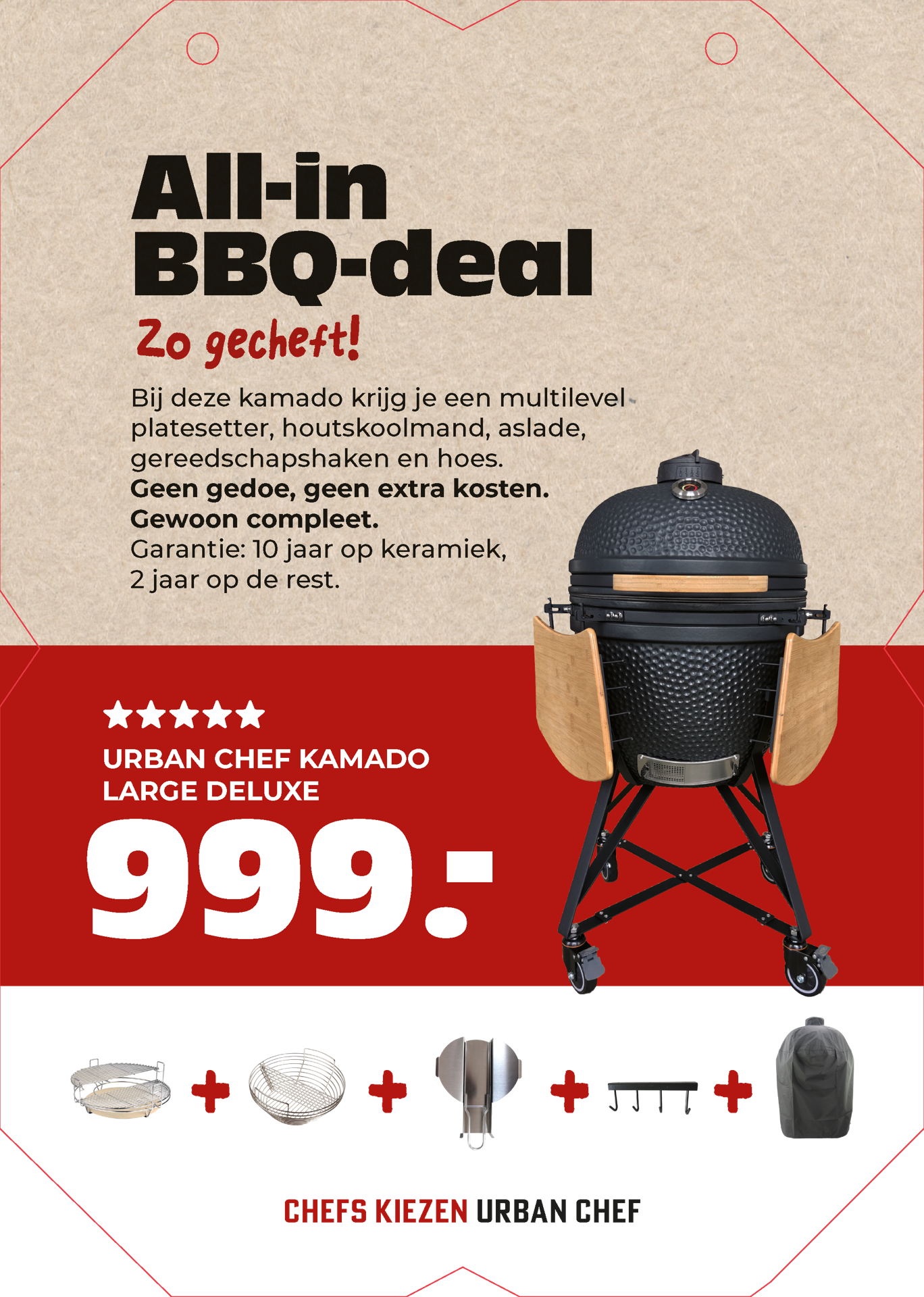 Reprop 3mm Afdelingssigning: 285x400 Urban Chef bord Kamado large deluxe zwart Full colour dubbelzijdig bedrukt