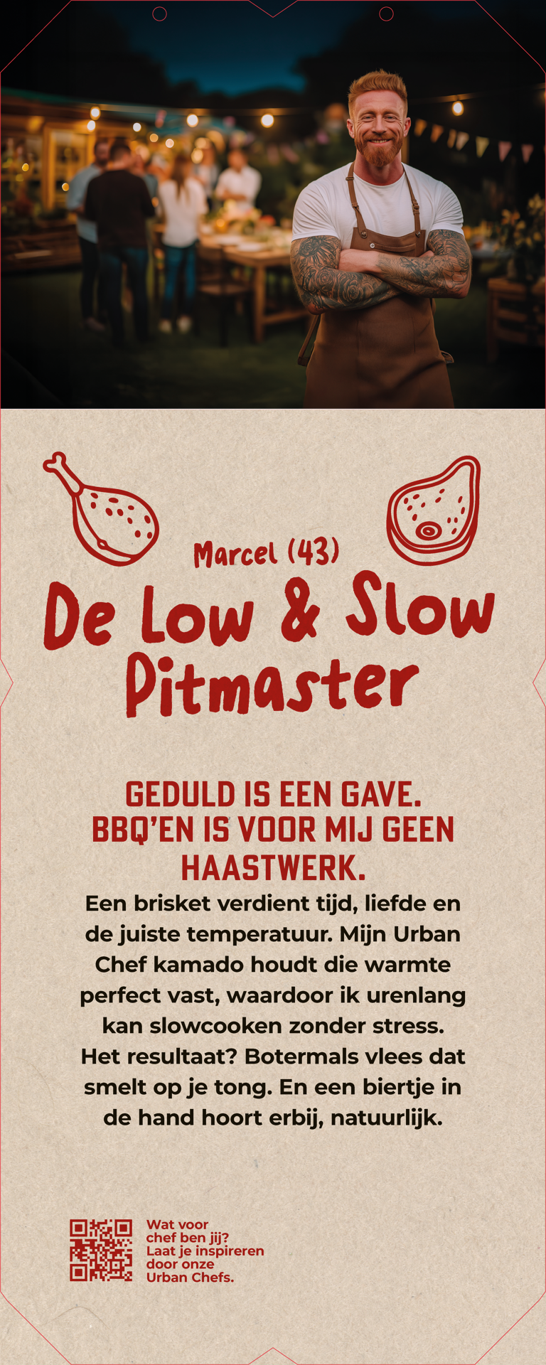 Dibond 3mm Afdelingssigning Urban_Chef_bord_persona_low_en_slow_pitmaster_400x1000 Full colour enkelzijdig bedrukt