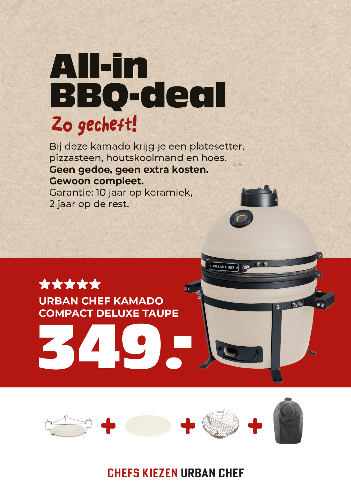 Reprop 3mm Paneel Afdelingssigning: 285 x 400. Urban Chef bord Kamado compact deluxe Full colour dubbelzijdig bedrukt