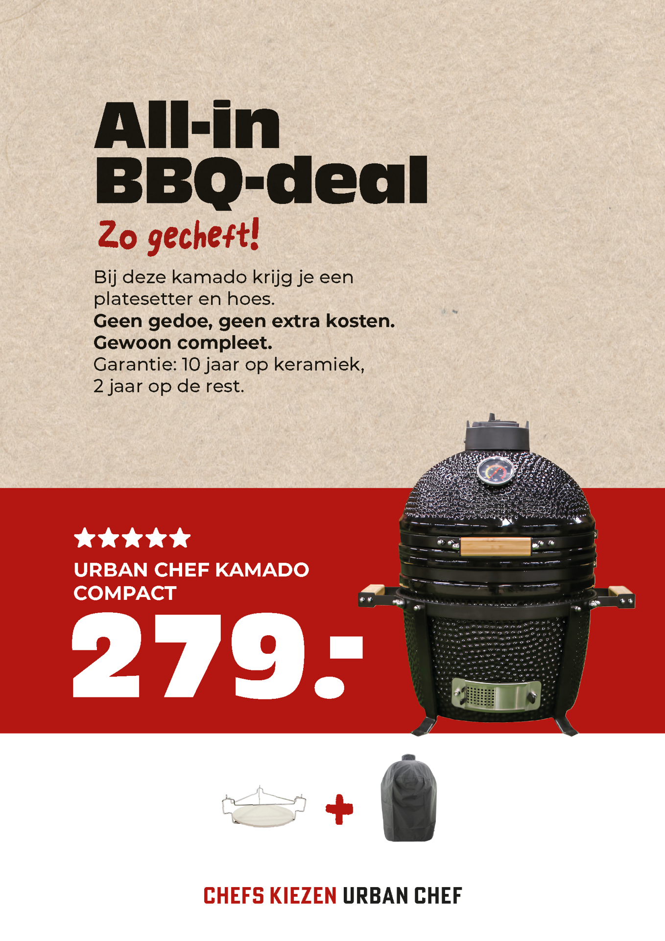 Posterpapier 200gr Poster: 297 x 210. Urban Chef prijskrt Kamado compact A4 Full colour dubbelzijdig bedrukt