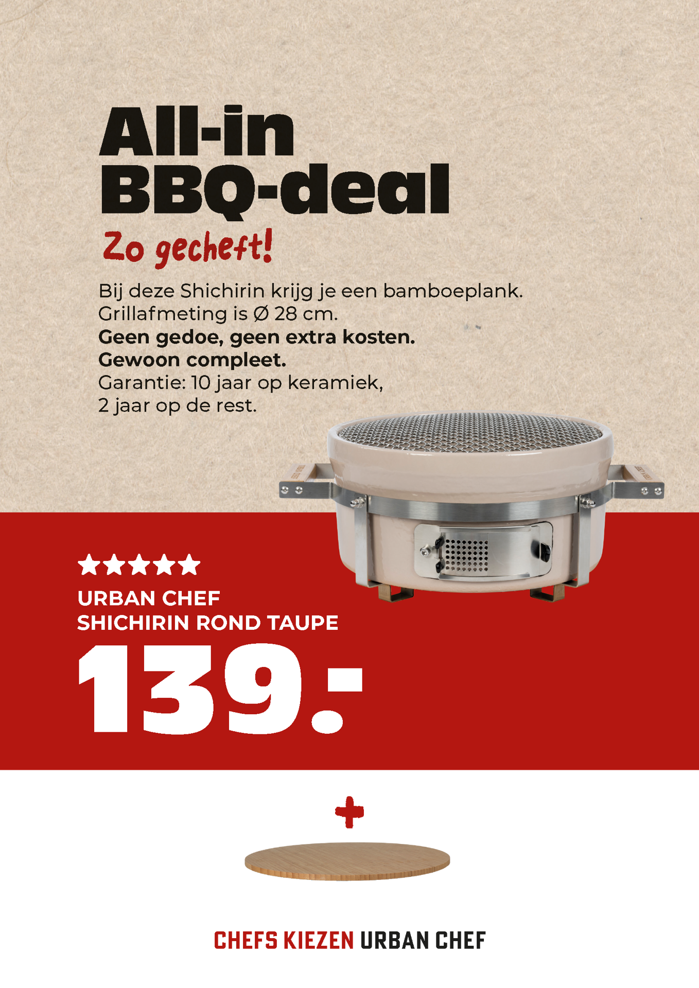 Posterpapier 200gr Poster: 297 x 210. Urban Chef prijskrt shichirin rond taupe A4 Full colour dubbelzijdig bedrukt